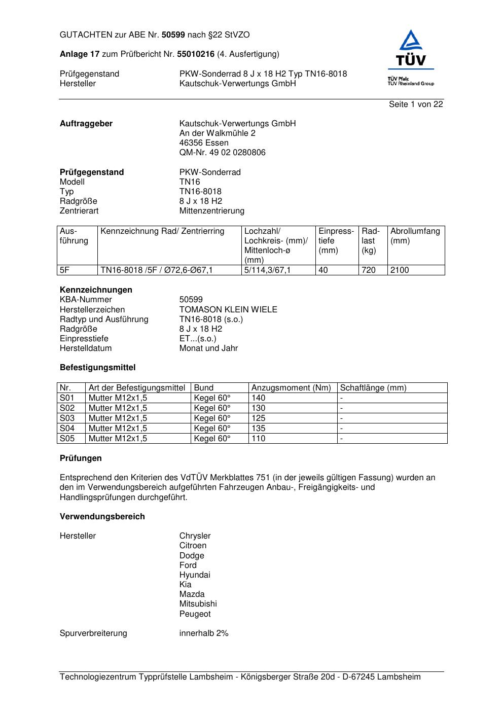 • Stimmt die KBA-Nummer auf der Felge mit diesem Dokument überein?