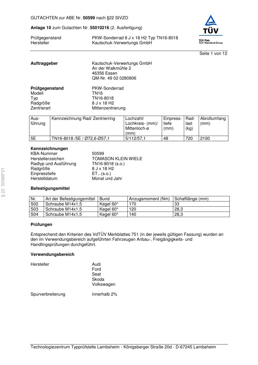 Dieses abe gehört zur Felge TOMASON TN16-8018 in ET0 mit KBA 50599. Die Seite ist dafür gedacht, dass du schnell prüfen kannst, ob KBA, Design und Größe zu deiner Felge passen und danach direkt das richtige PDF lädst.