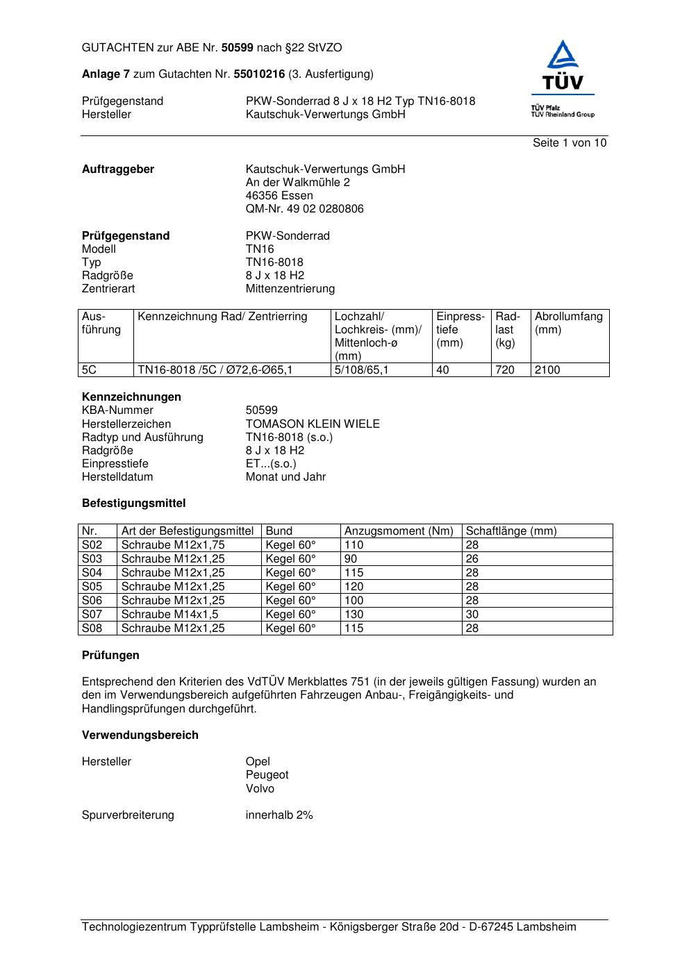 • Stimmt die KBA-Nummer auf der Felge mit diesem Dokument überein?