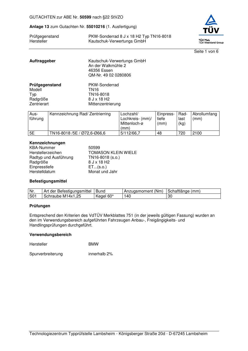 Dieses abe gehört zur Felge TOMASON TN16-8018 in ET0 mit KBA 50599. Die Seite ist dafür gedacht, dass du schnell prüfen kannst, ob KBA, Design und Größe zu deiner Felge passen und danach direkt das richtige PDF lädst.