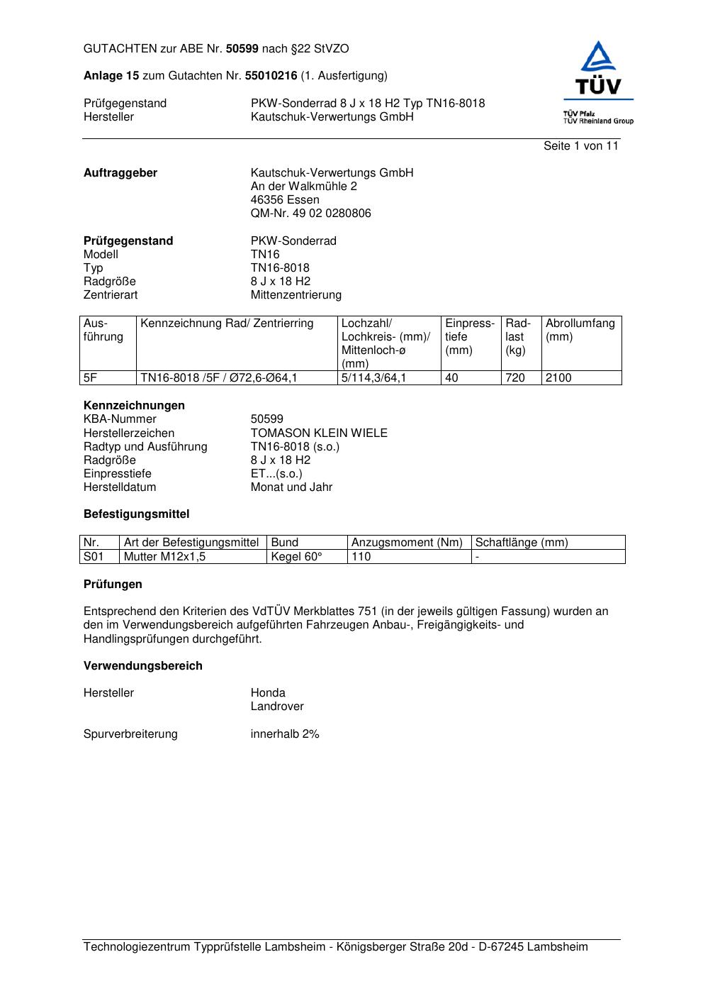 • Stimmt die KBA-Nummer auf der Felge mit diesem Dokument überein?