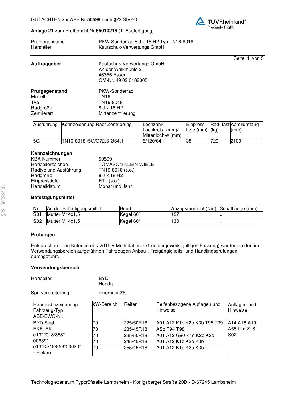 - Stimmt die KBA-Nummer auf der Felge mit diesem Dokument überein?