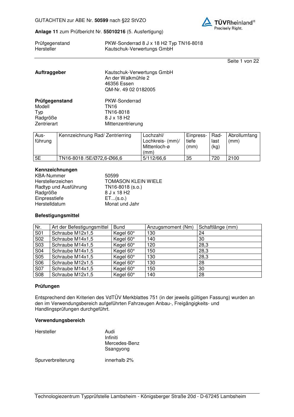 • Stimmt die KBA-Nummer auf der Felge mit diesem Dokument überein?