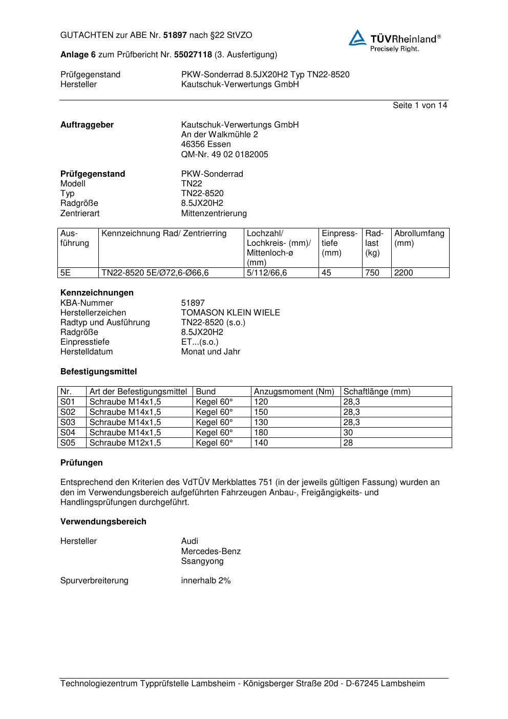 • Stimmt die KBA-Nummer auf der Felge mit diesem Dokument überein?