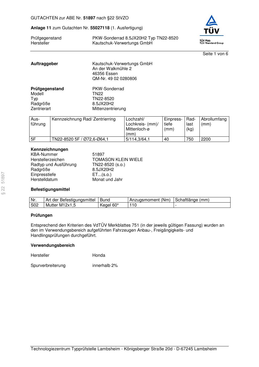 • Stimmt die KBA-Nummer auf der Felge mit diesem Dokument überein?