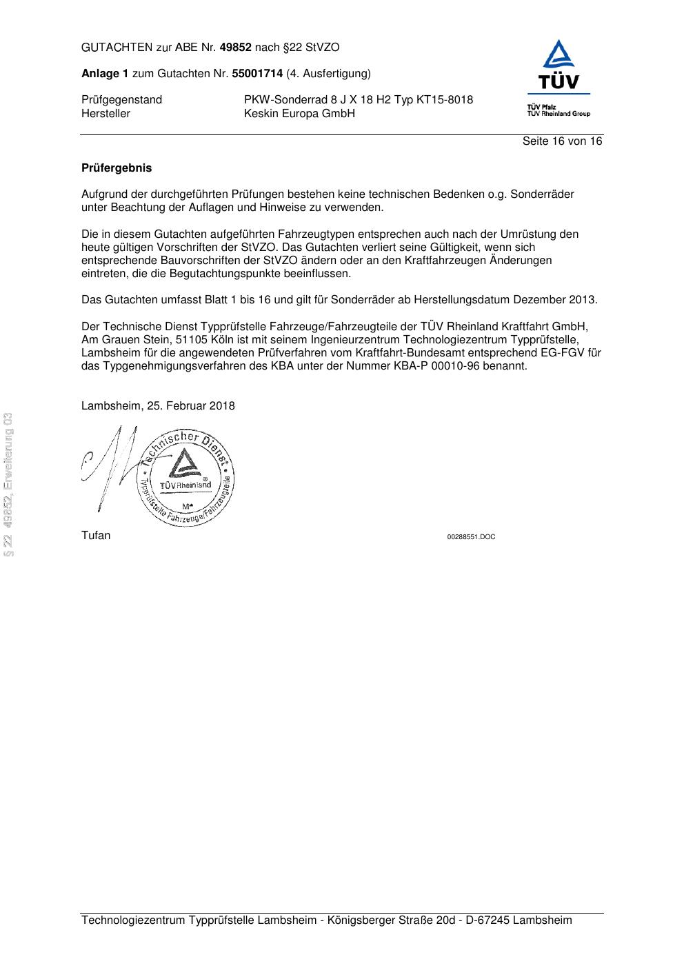 • Stimmt die KBA-Nummer auf der Felge mit diesem Dokument überein?