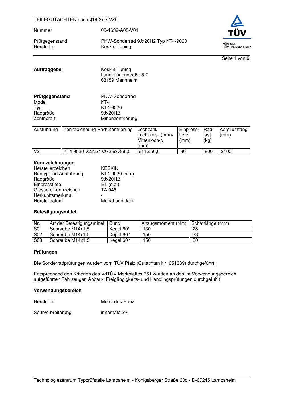 teilegutachten 05-1639-a05-v01 Keskin KT4-9020
