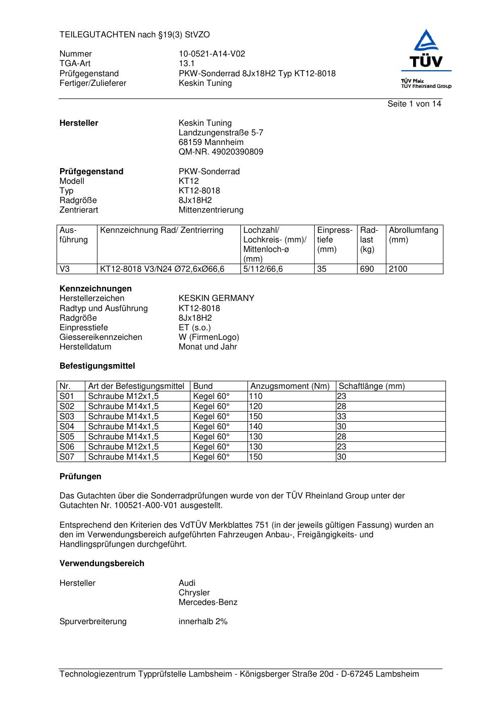 teilegutachten 100521-a00-v01 Keskin KT12-8018