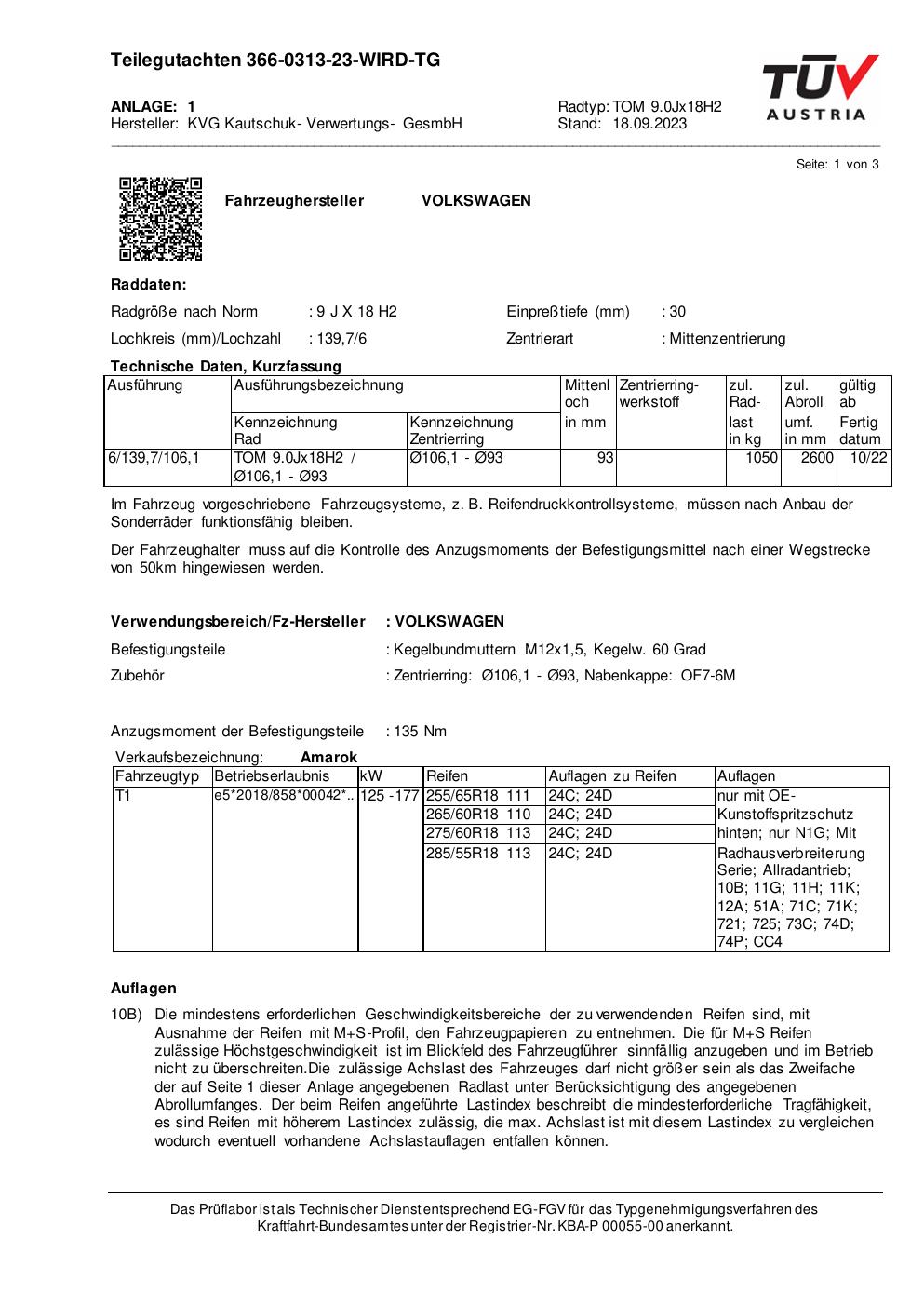 teilegutachten 366-0313-23-wird-tg KVG Kautschuk - Verwertungs - GesmbH TOM 9.0Jx18H2