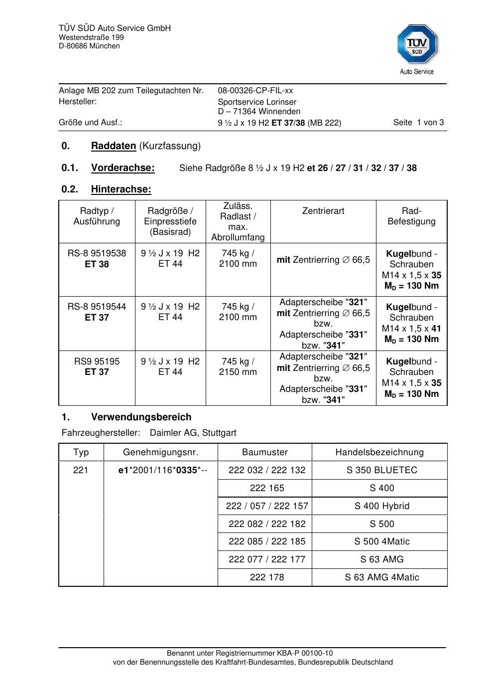 teilegutachten 08-00326-cp-fil-xx Sportservice Lorinser RS-8