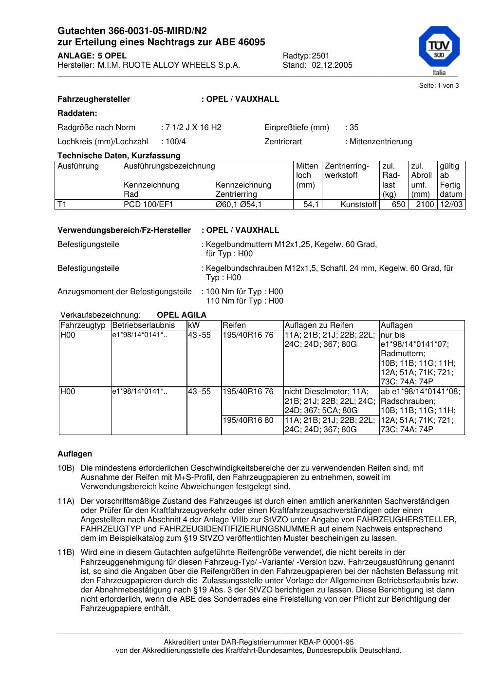 - M.I.M. RUOTE ALLOY WHEELS S.p.A. 2501 – 0.0Jx0 ET0.0 (KBA 46095)