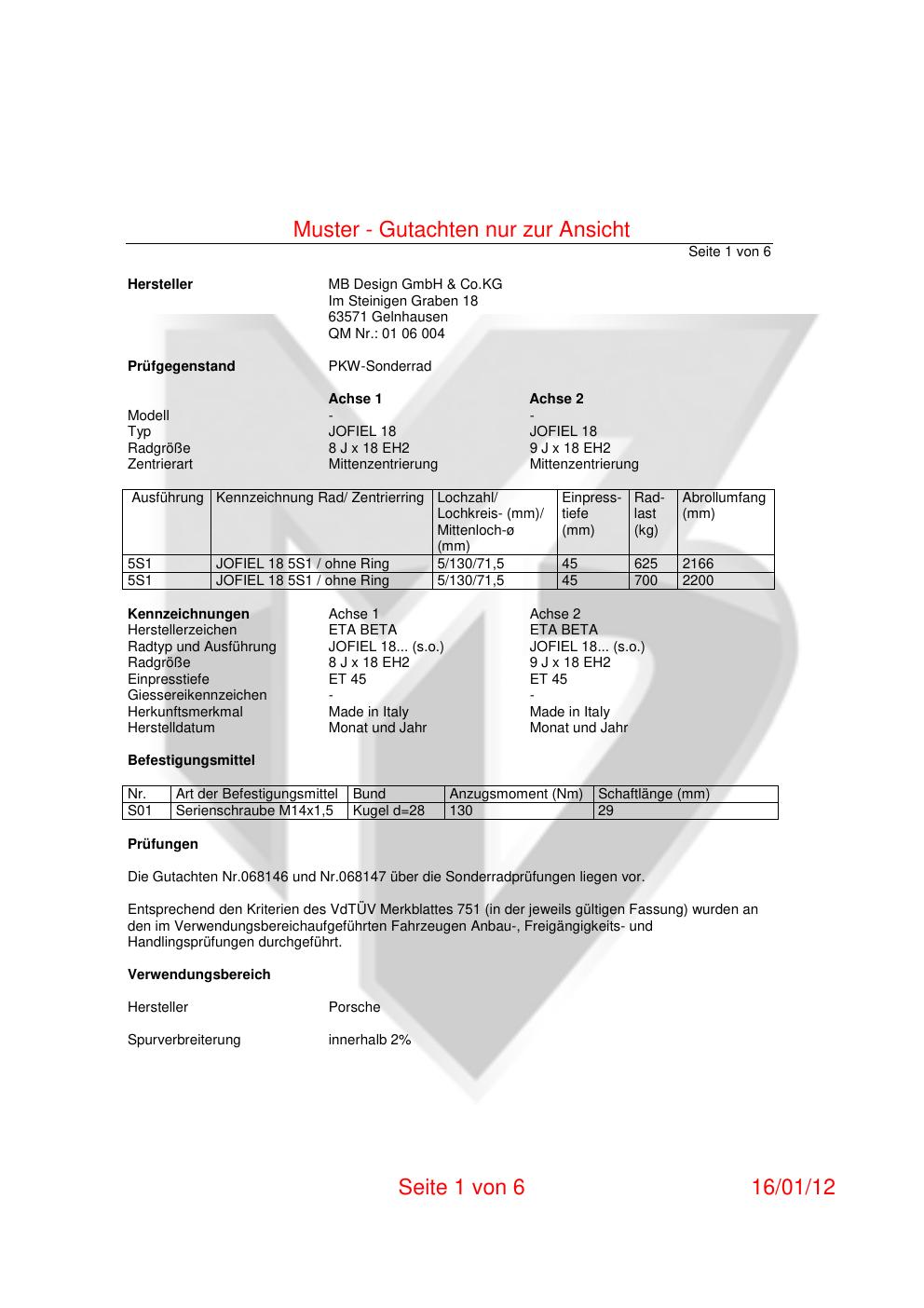 teilegutachten 068146 MB Design GmbH & Co.KG JOFIEL