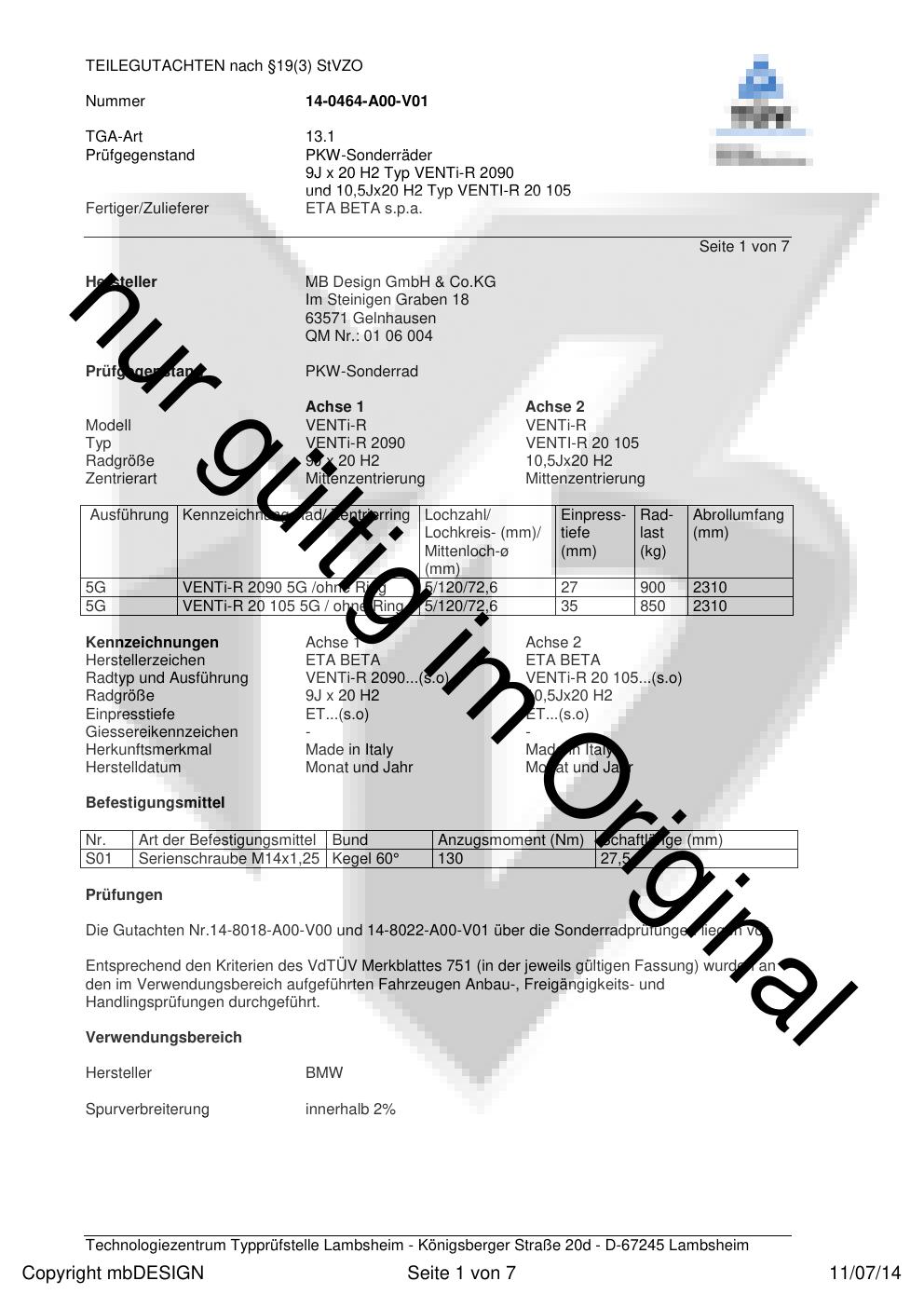 teilegutachten 14-0464-a00-v01 MB Design GmbH & Co.KG VENTi-R 2090