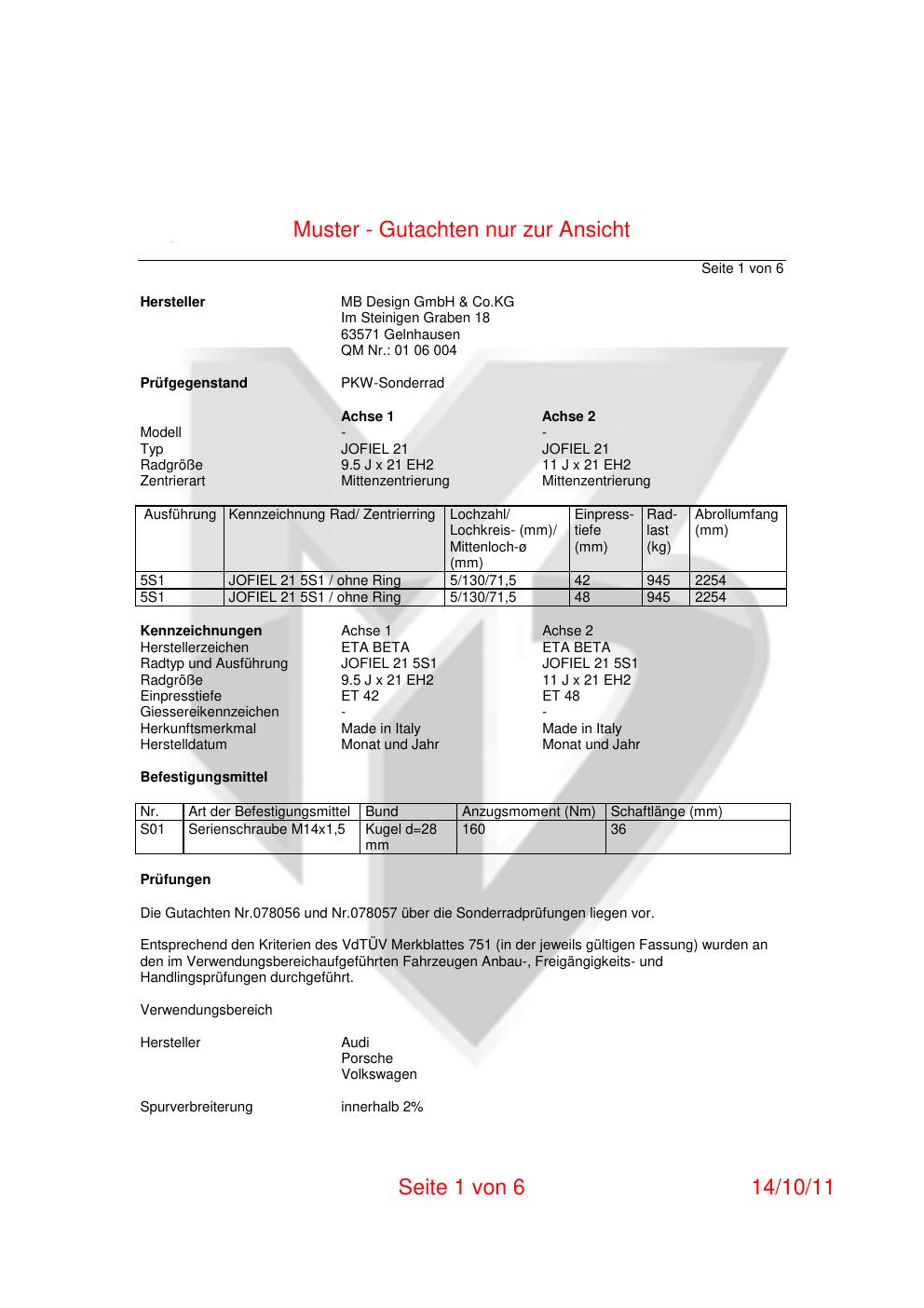 teilegutachten 07-1091-a00-v02 MB Design GmbH & Co.KG JOFIEL