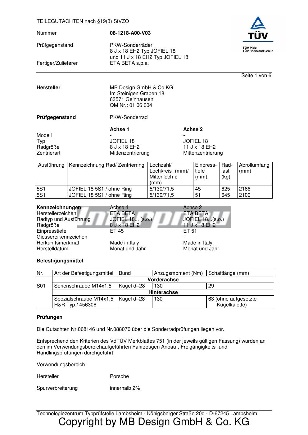 teilegutachten 08-1218-a00-v03 MB Design GmbH & Co.KG JOFIEL