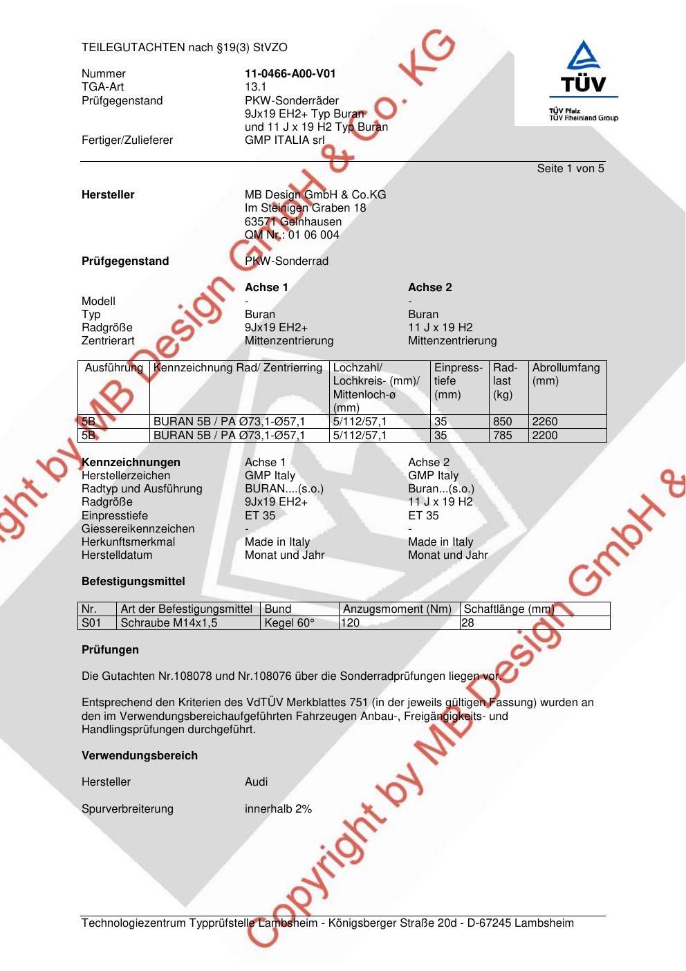 teilegutachten 11-0466-a00-v01 MB Design GmbH & Co.KG Buran