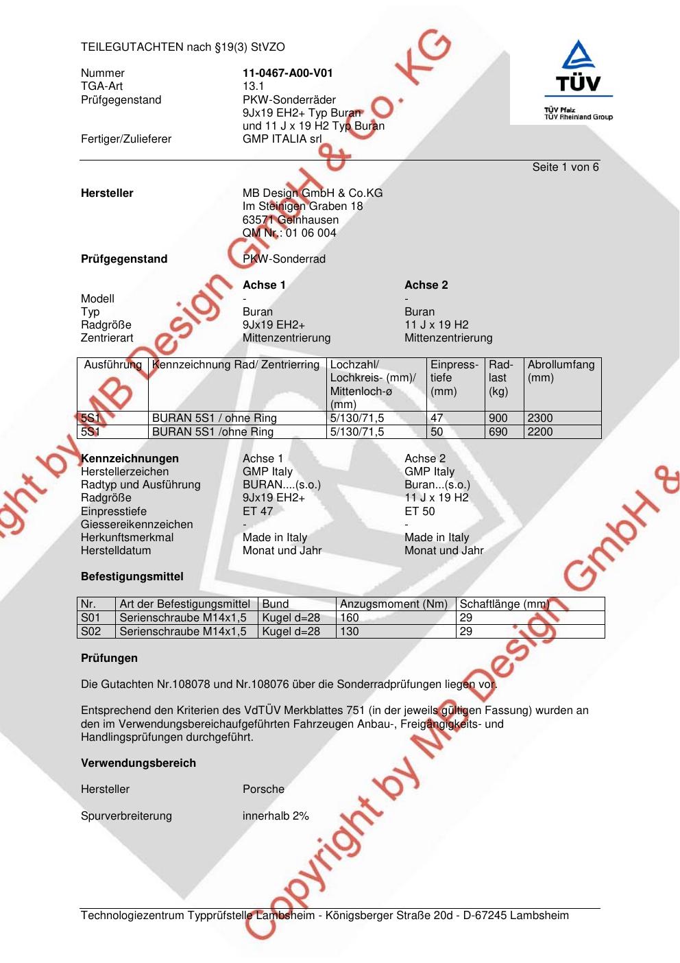 teilegutachten 11-0467-a00-v01 MB Design GmbH & Co.KG Buran