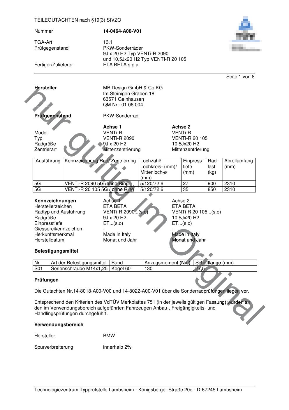 teilegutachten 14-0464-a00-v01 MB Design GmbH & Co.KG VENTi-R 2090