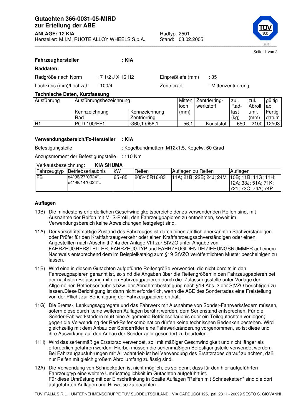 teilegutachten 366-0031-05-mird MIM 2501
