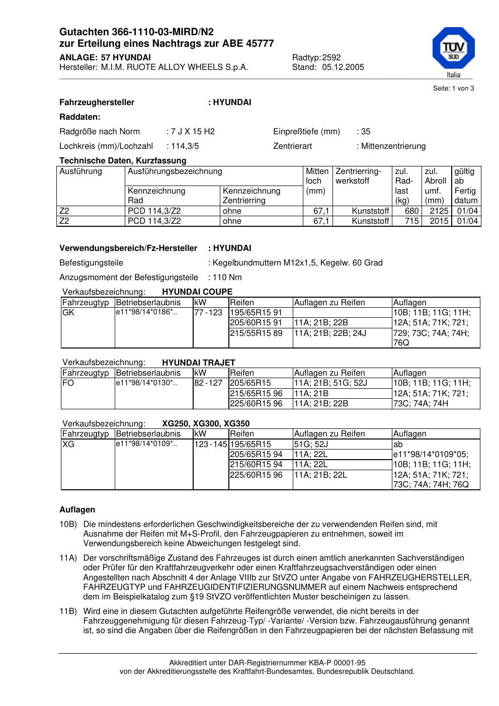 Felgengutachten / abe für Alufelgen M.I.M. RUOTE 2592 (ET 0, Mittenloch 0 mm) mit KBA 45777 (Zertifikatsnummer 45777). Hier kostenlos als PDF herunterladen. Der Download-Link ist 24 Stunden gültig und kann bis zu zwei Mal verwendet werden.
