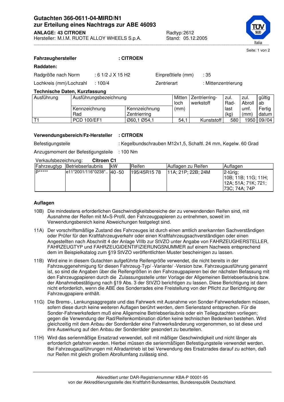 abe KBA 46093 M.I.M. RUOTE ALLOY WHEELS S.p.A. 2612