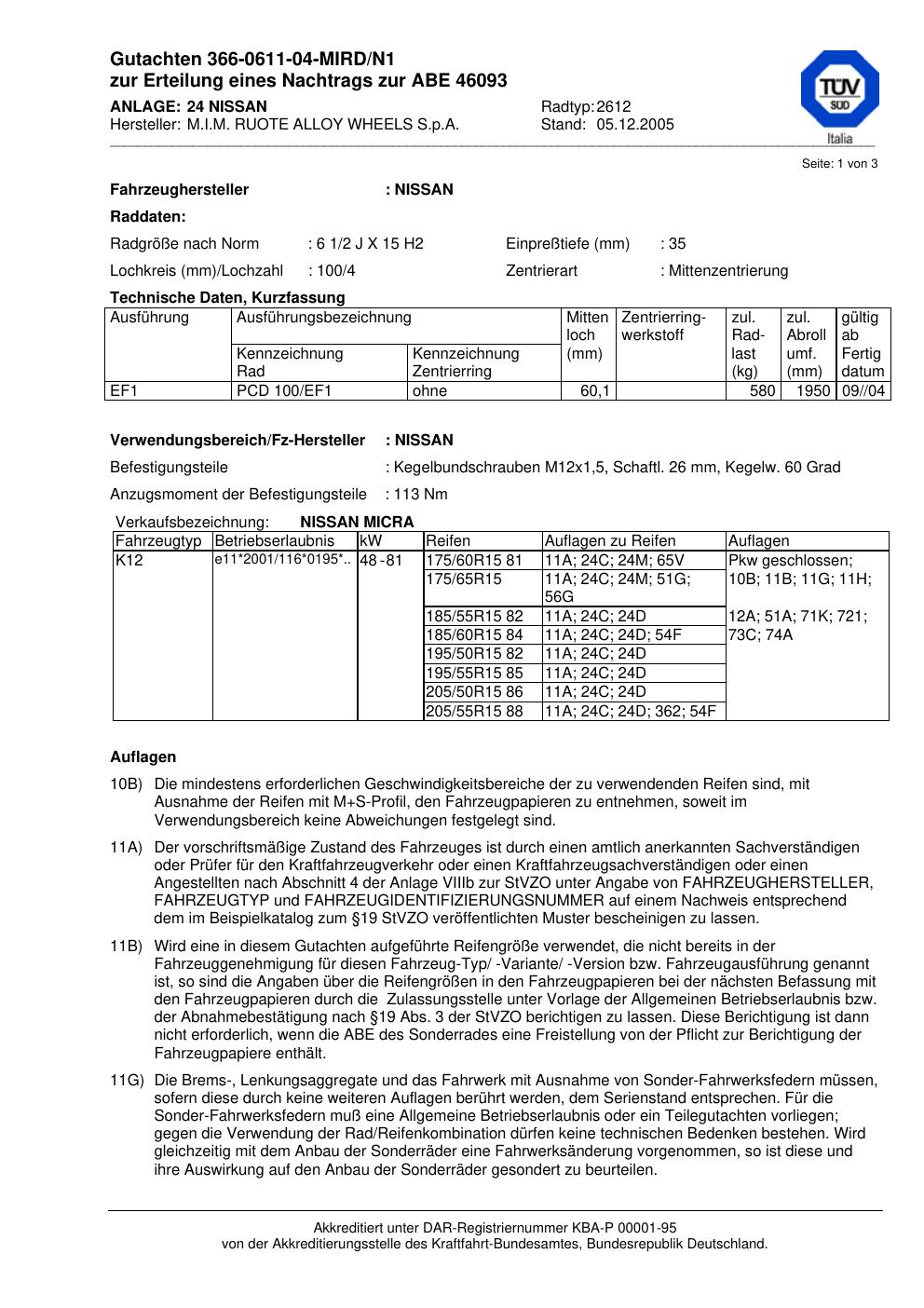 abe KBA 46093 M.I.M. RUOTE ALLOY WHEELS S.p.A. 2612