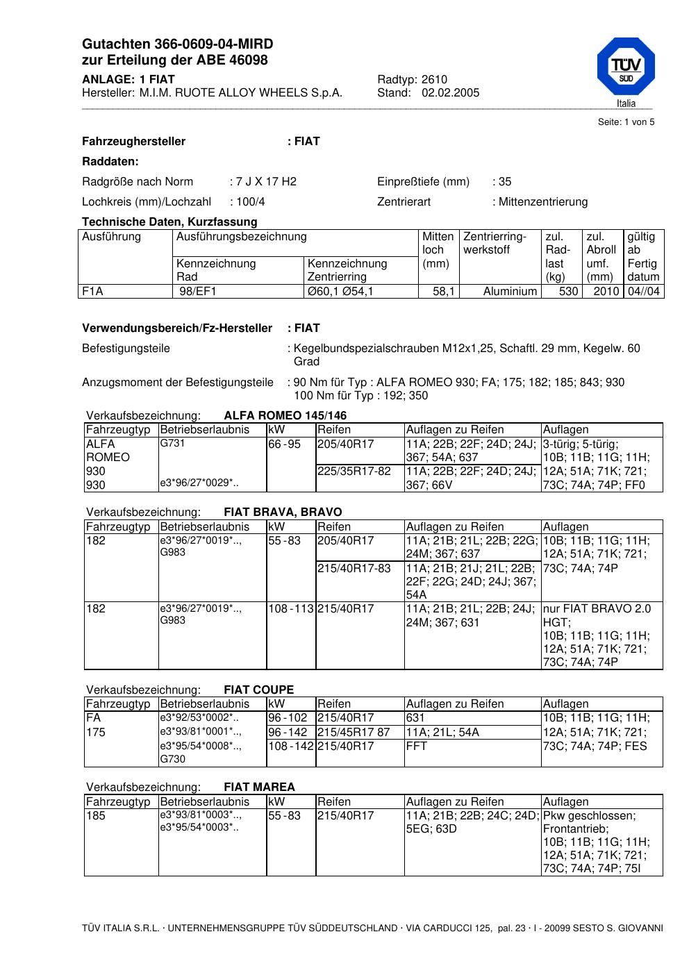 abe KBA 46098 M.I.M. RUOTE ALLOY WHEELS S.p.A. 2610