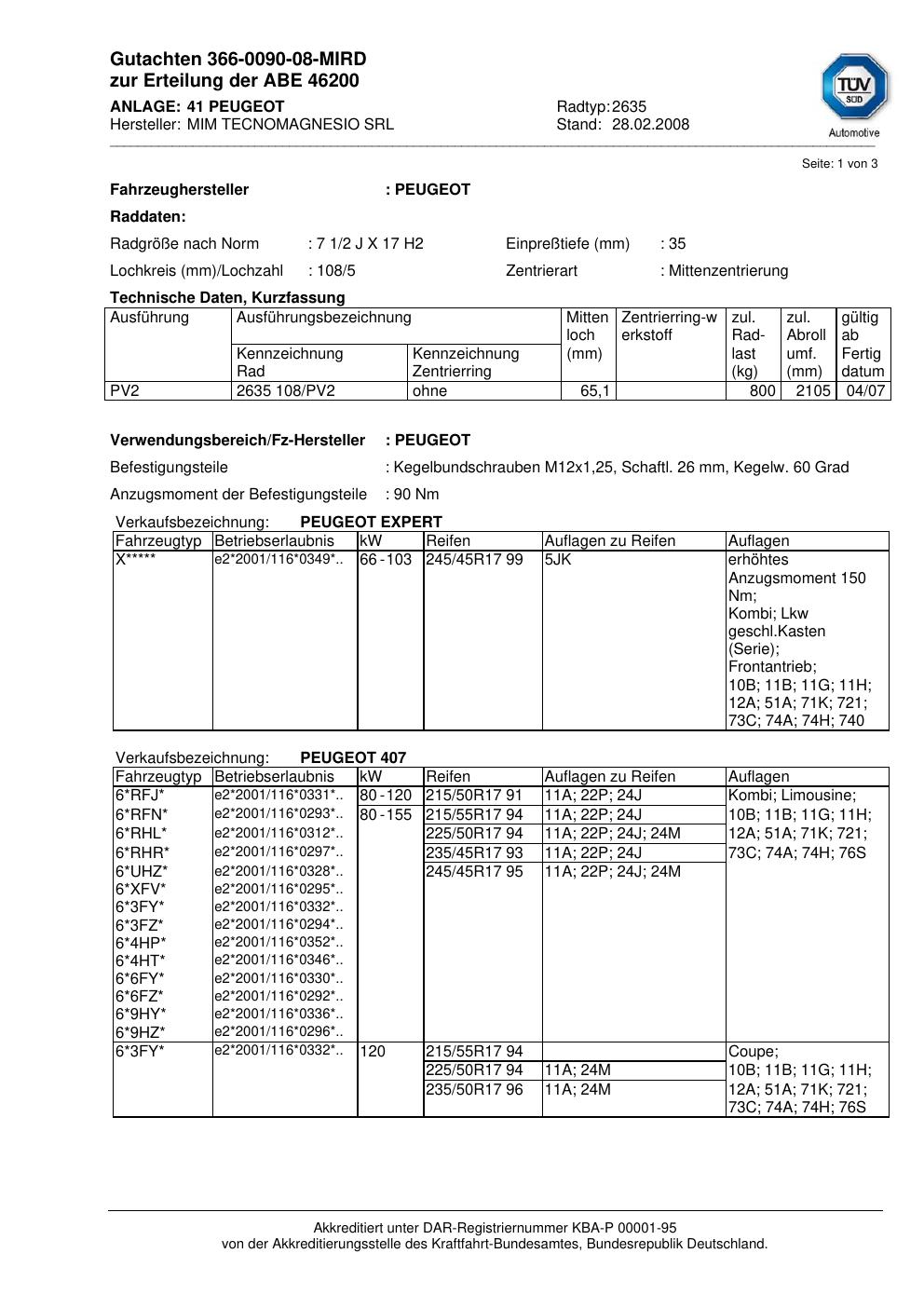 • Stimmt die KBA-Nummer auf der Felge mit diesem Dokument überein?