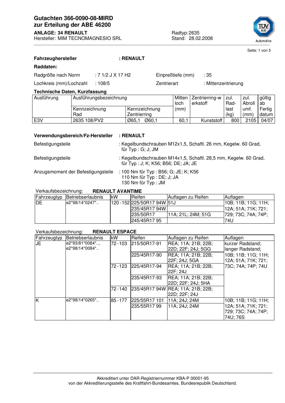 • Stimmt die KBA-Nummer auf der Felge mit diesem Dokument überein?