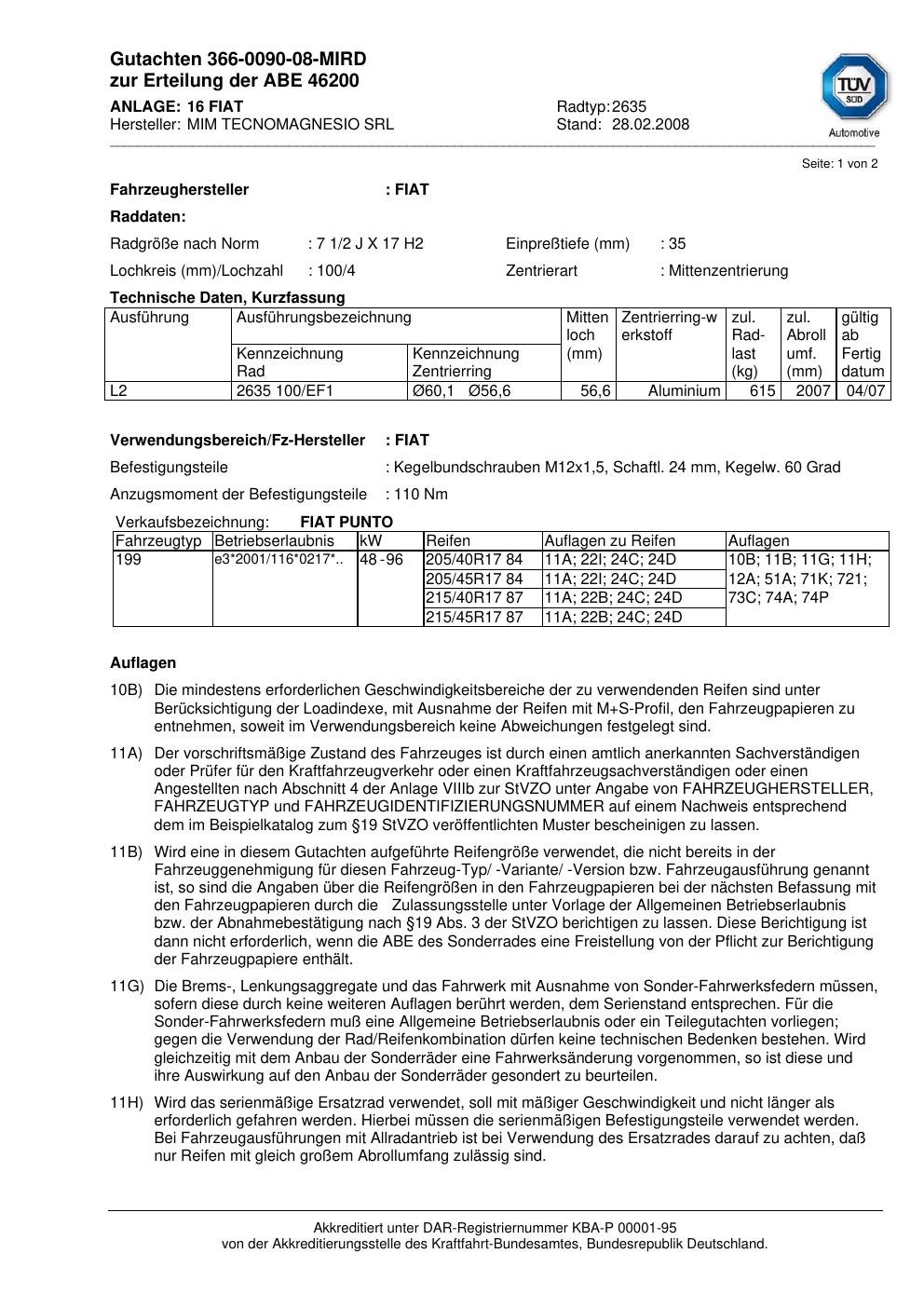 • Stimmt die KBA-Nummer auf der Felge mit diesem Dokument überein?