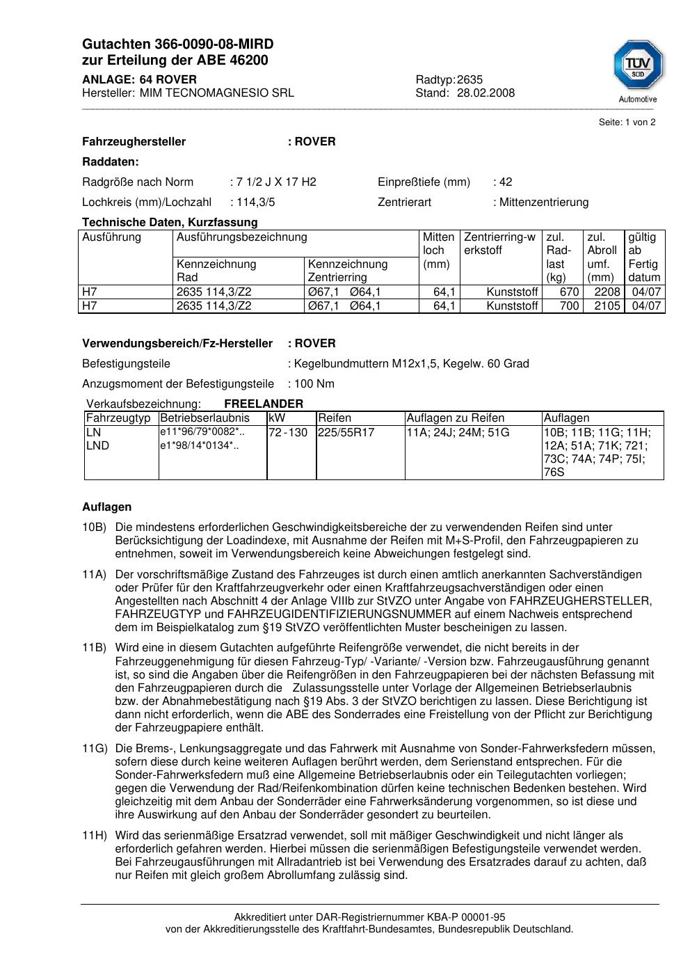 • Stimmt die KBA-Nummer auf der Felge mit diesem Dokument überein?