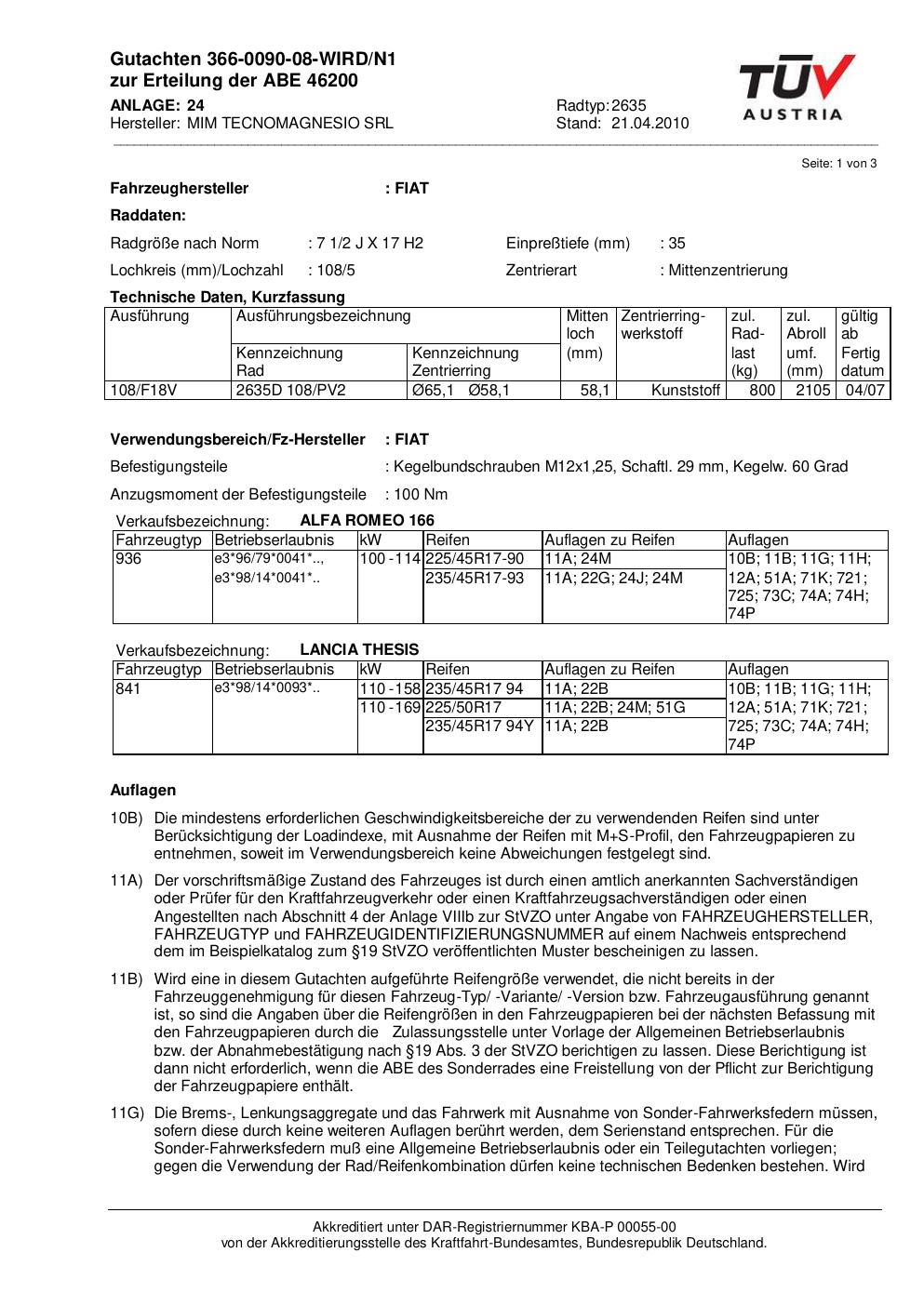• Stimmt die KBA-Nummer auf der Felge mit diesem Dokument überein?