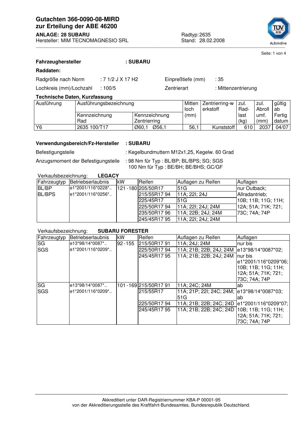 Dieses Dokument ist vor allem dann hilfreich, wenn du bereits eine konkrete KBA-Nummer, eine bestimmte Felge oder eine bekannte Zollgröße suchst. Prüfe vor dem Download kurz, ob KBA-Nummer, Felgengröße und Design/Serie zu deiner Felge passen.