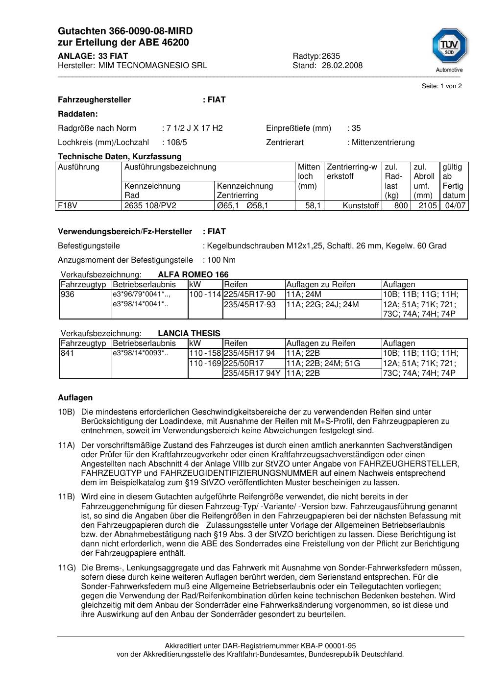 • Stimmt die KBA-Nummer auf der Felge mit diesem Dokument überein?