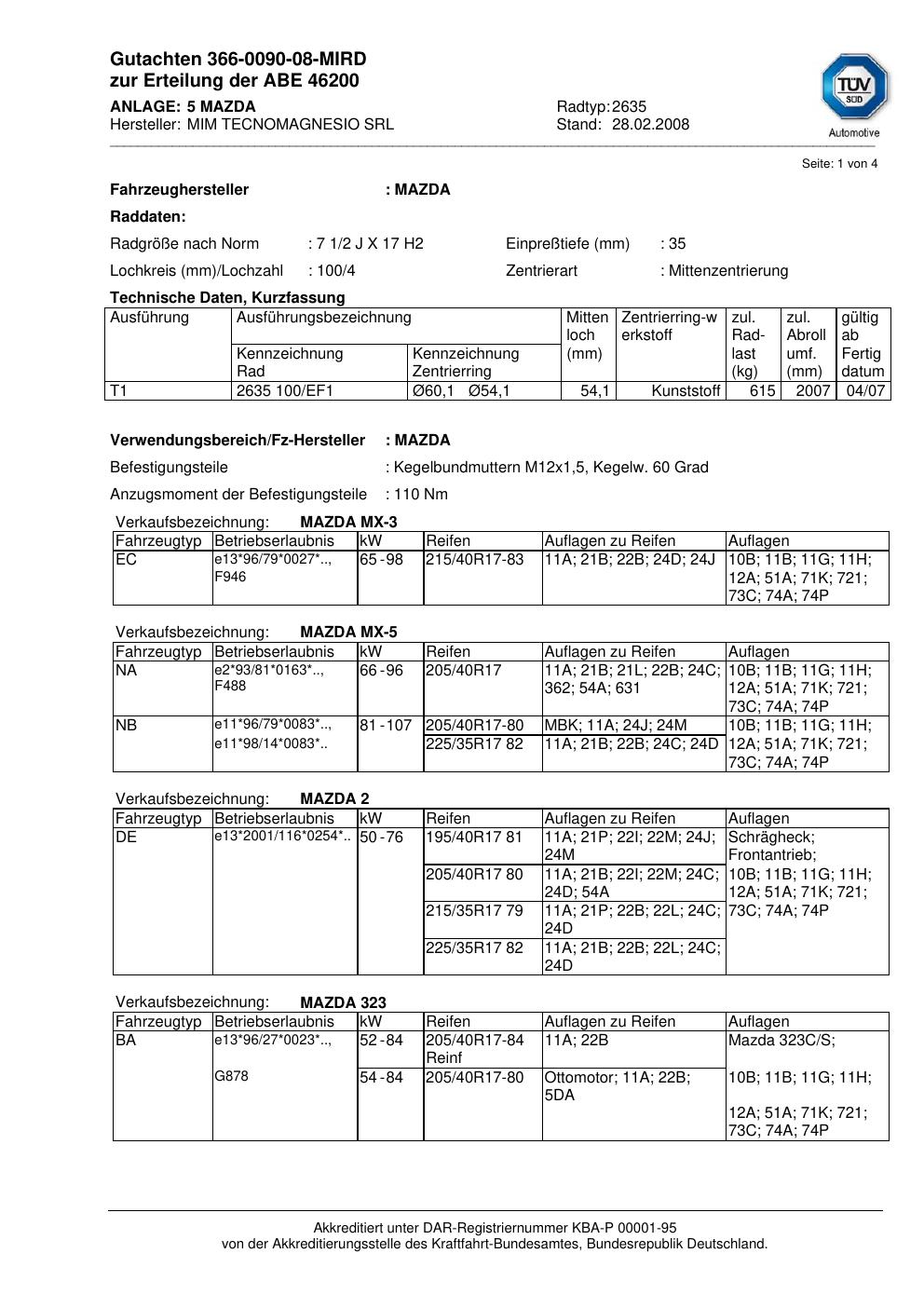 • Stimmt die KBA-Nummer auf der Felge mit diesem Dokument überein?