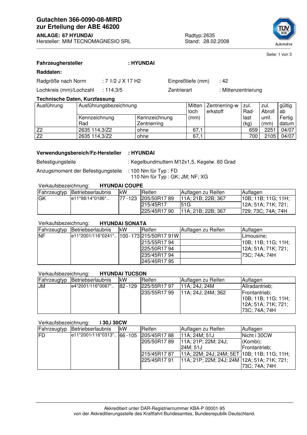 Diese Varianten sind zum aktuellen Dokument besonders nah. Maßgeblich sind vor allem gleiche KBA-Nummer, gleiche Serie oder eine sehr ähnliche Felgengröße.
