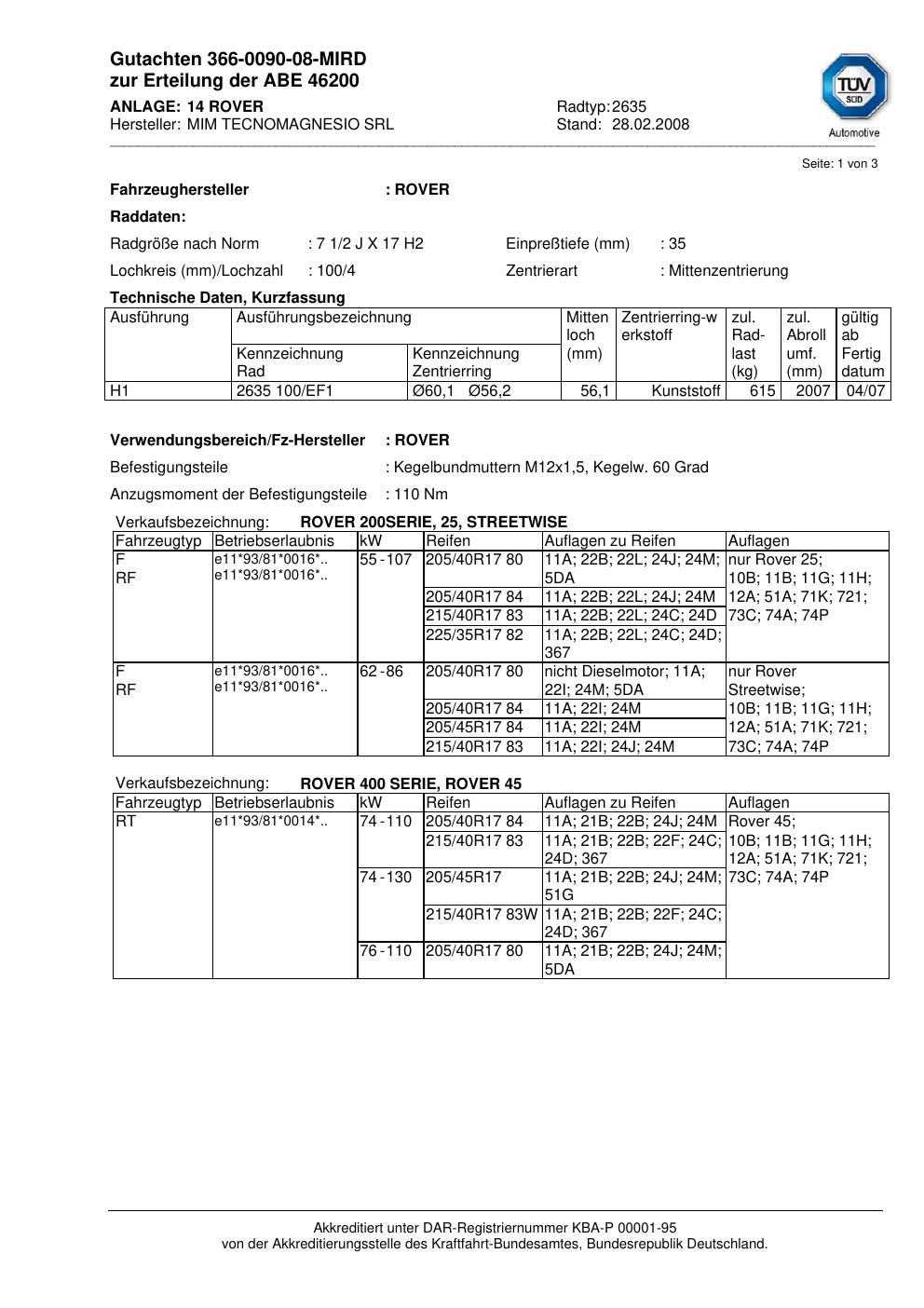 Dieses Dokument ist vor allem dann hilfreich, wenn du bereits eine konkrete KBA-Nummer, eine bestimmte Felge oder eine bekannte Zollgröße suchst. Prüfe vor dem Download kurz, ob KBA-Nummer, Felgengröße und Design/Serie zu deiner Felge passen.