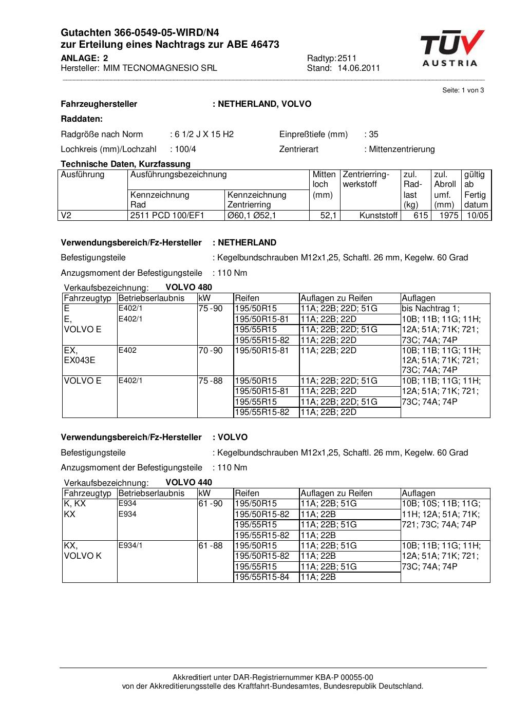 • Stimmt die KBA-Nummer auf der Felge mit diesem Dokument überein?