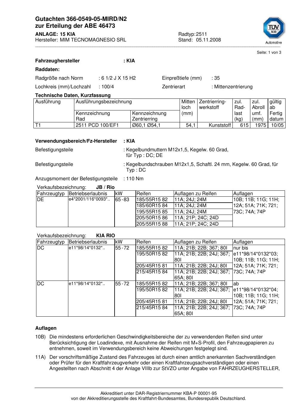 - Stimmt die KBA-Nummer auf der Felge mit diesem Dokument überein?