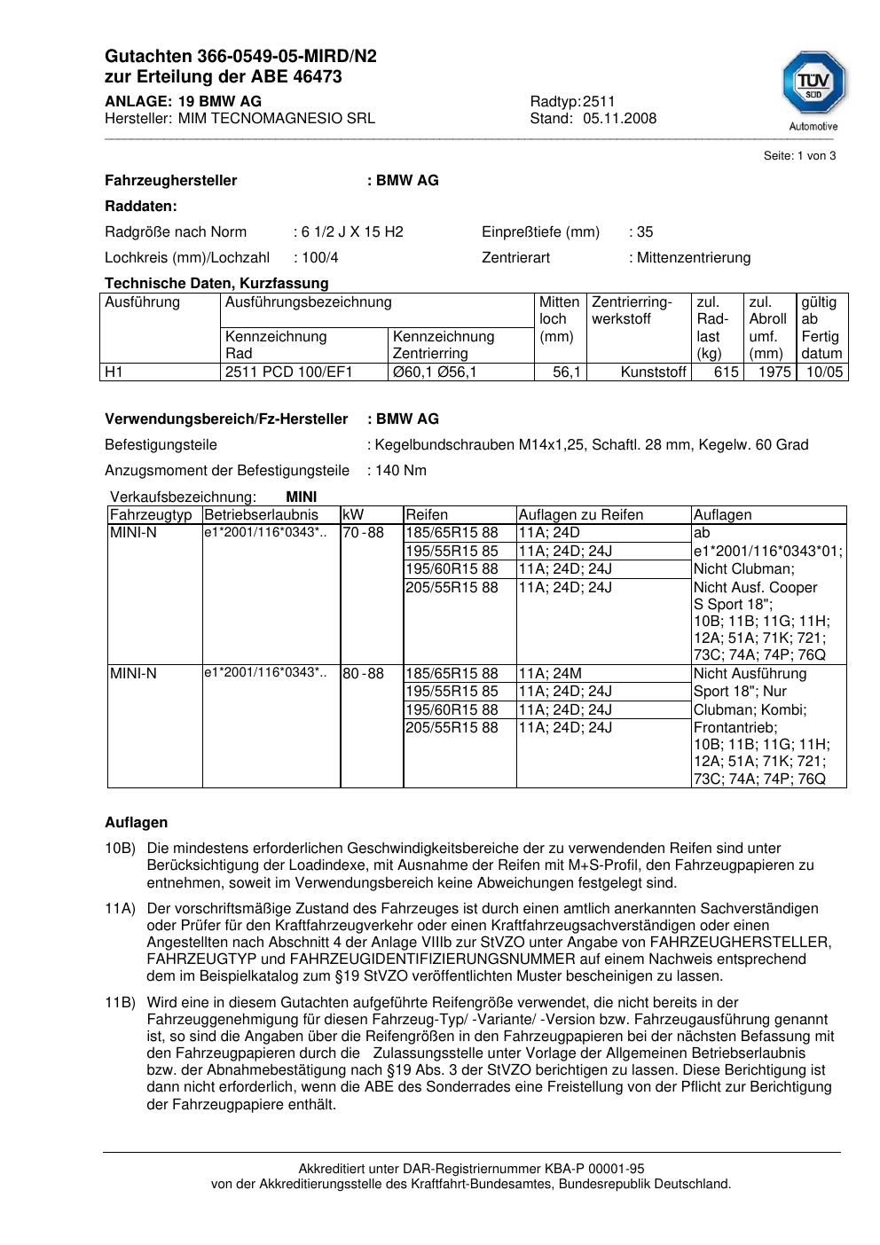 • Stimmt die KBA-Nummer auf der Felge mit diesem Dokument überein?