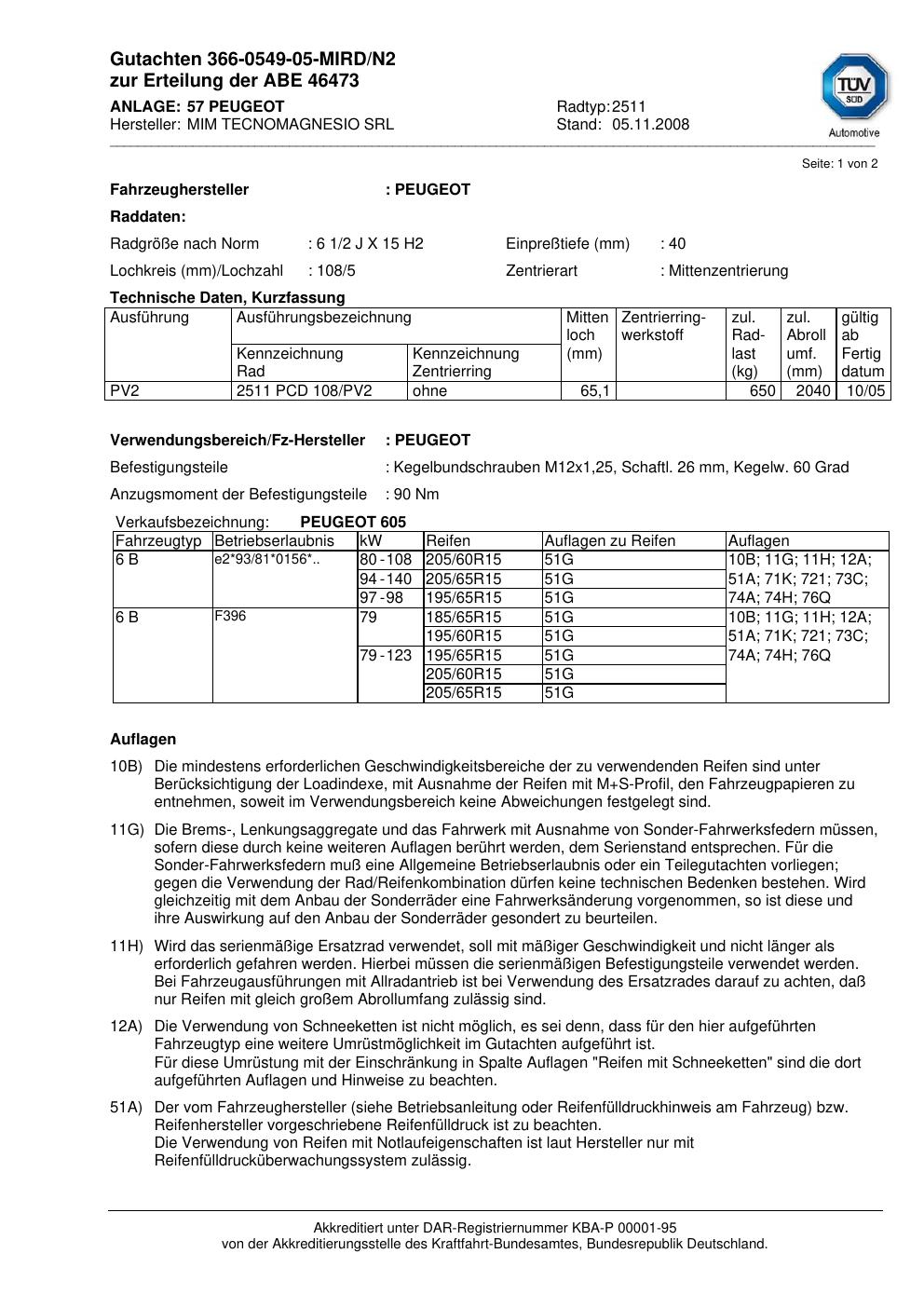 • Stimmt die KBA-Nummer auf der Felge mit diesem Dokument überein?