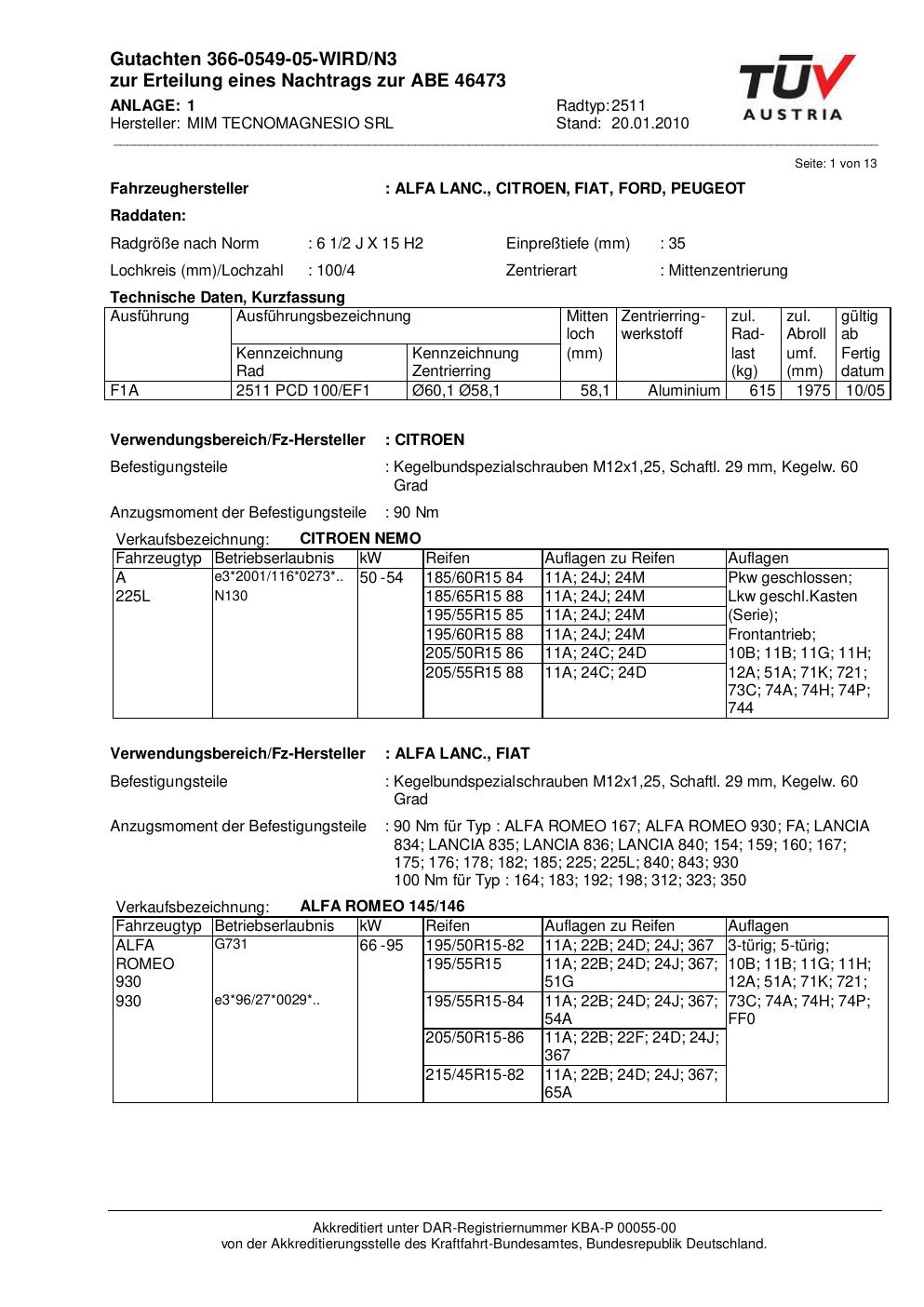 • Stimmt die KBA-Nummer auf der Felge mit diesem Dokument überein?