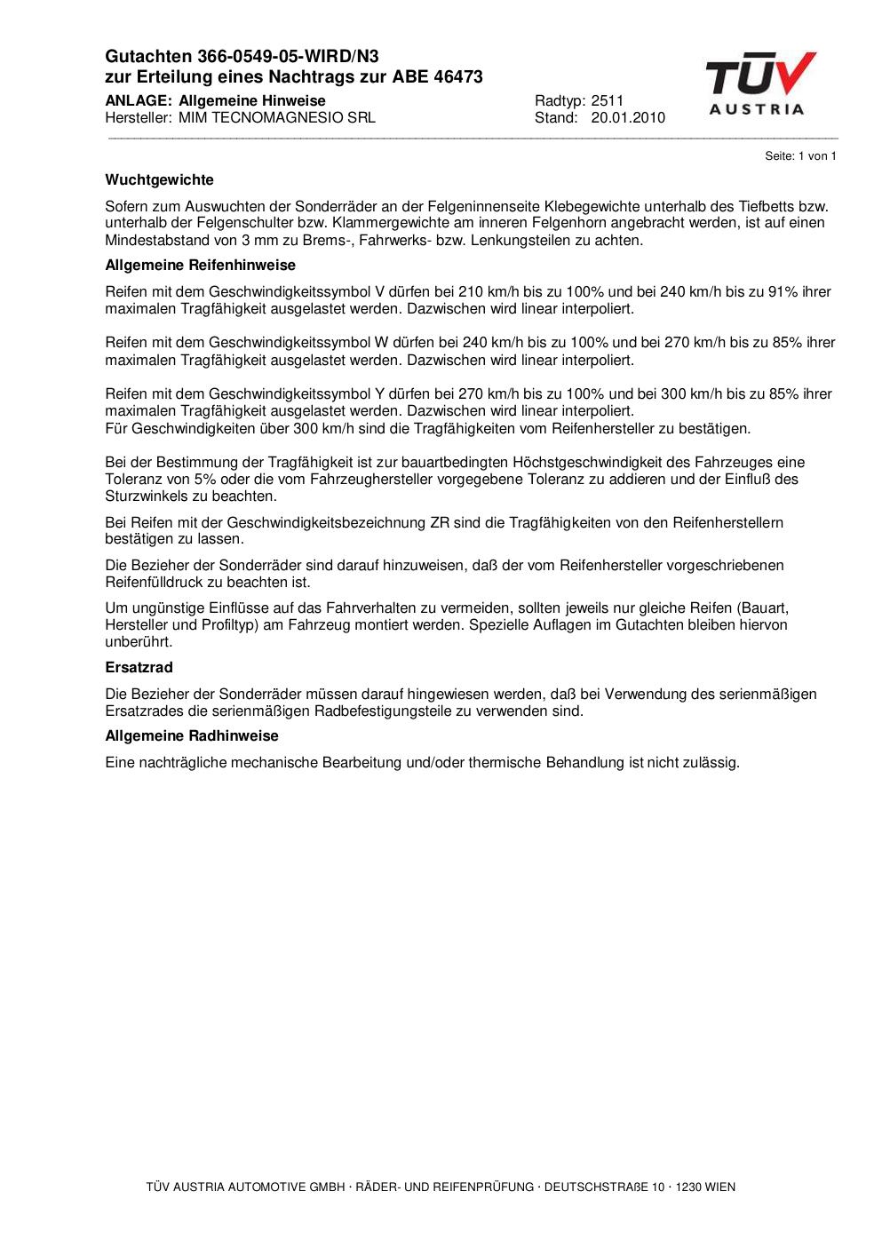• Stimmt die KBA-Nummer auf der Felge mit diesem Dokument überein?