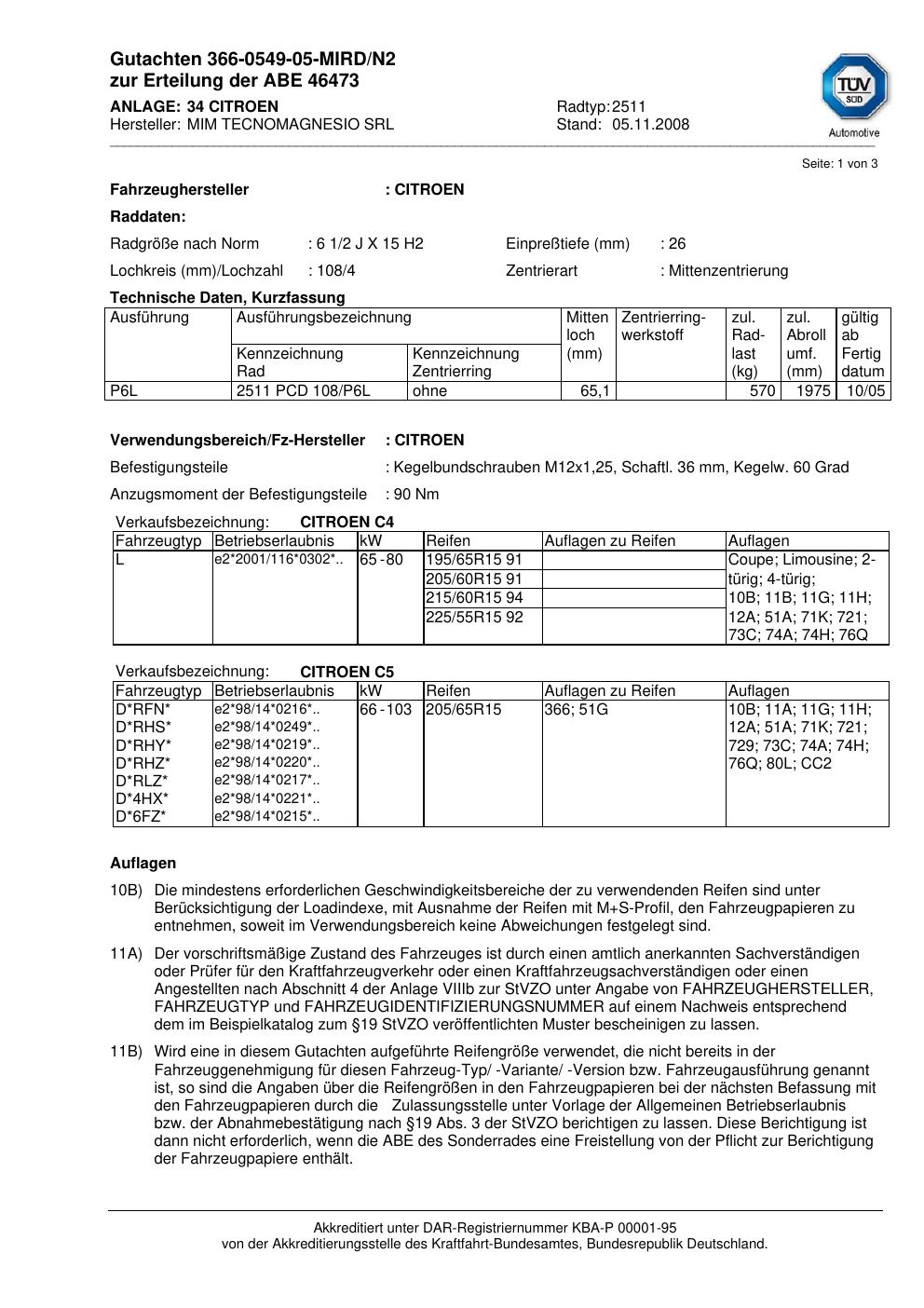 • Stimmt die KBA-Nummer auf der Felge mit diesem Dokument überein?