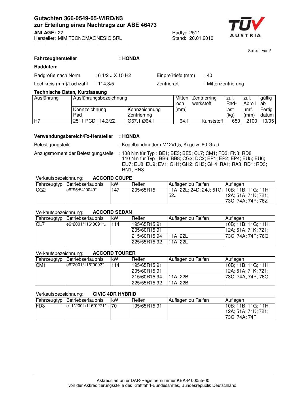 - Stimmt die KBA-Nummer auf der Felge mit diesem Dokument überein?