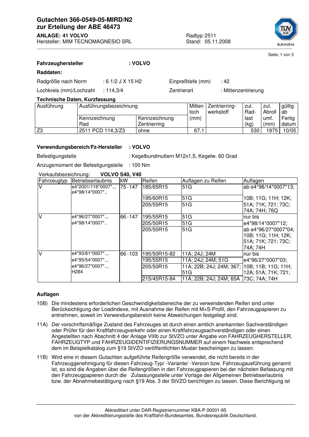 • Stimmt die KBA-Nummer auf der Felge mit diesem Dokument überein?