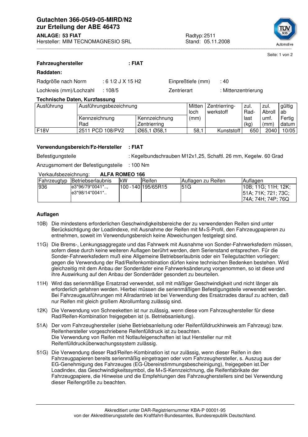 • Stimmt die KBA-Nummer auf der Felge mit diesem Dokument überein?