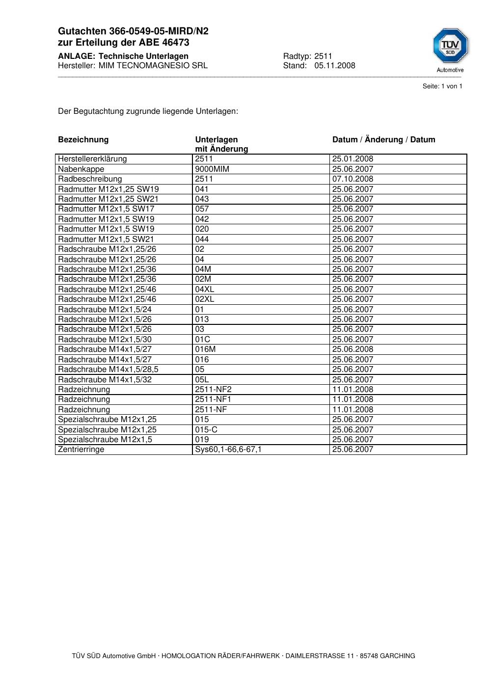 • Stimmt die KBA-Nummer auf der Felge mit diesem Dokument überein?