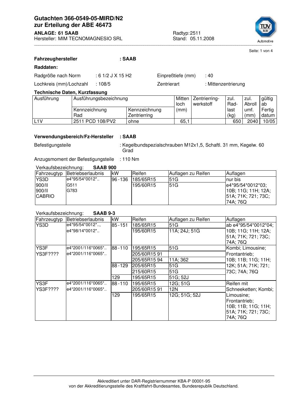• Stimmt die KBA-Nummer auf der Felge mit diesem Dokument überein?