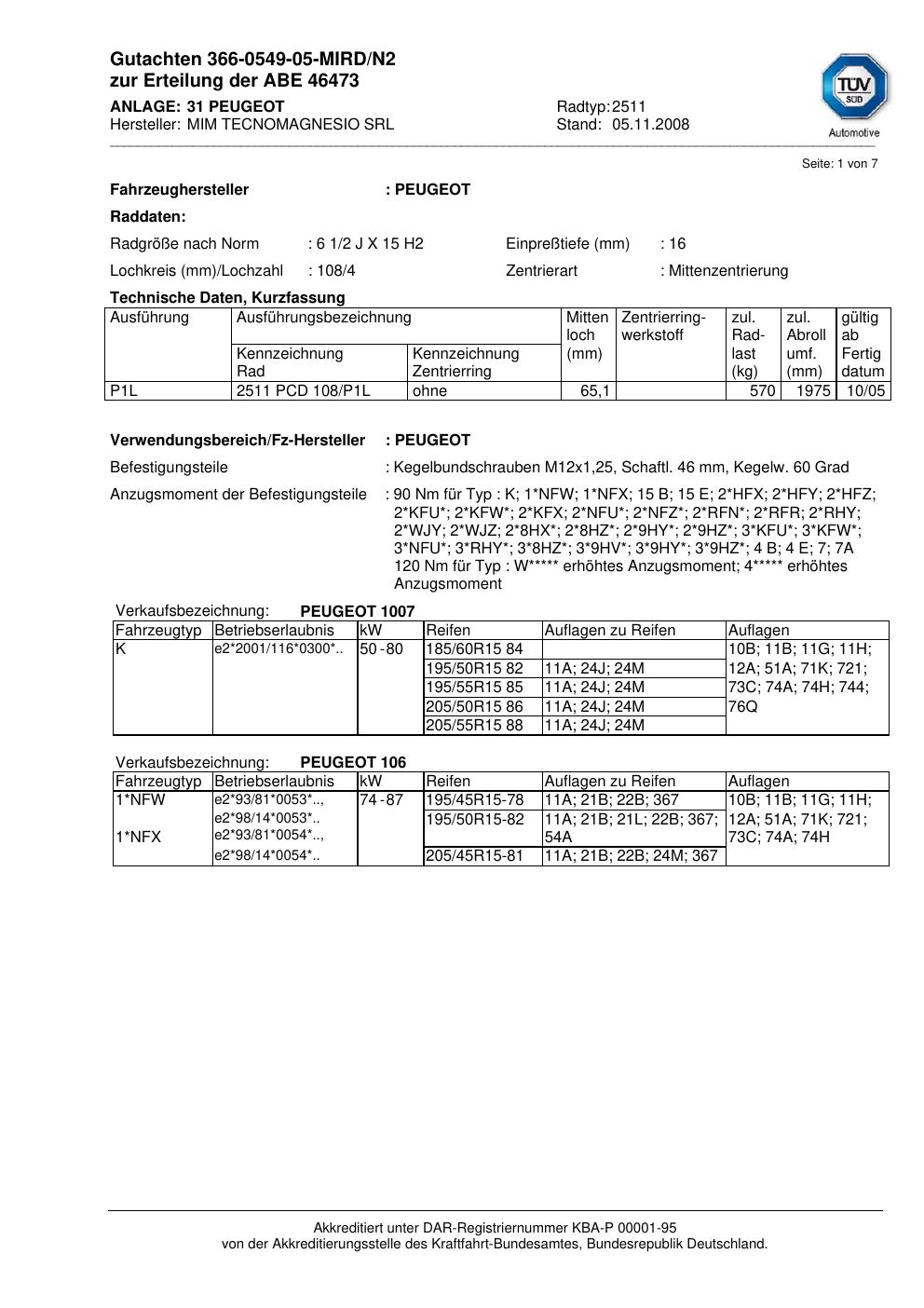 • Stimmt die KBA-Nummer auf der Felge mit diesem Dokument überein?